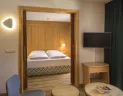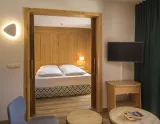 - Rodinná suita Superior (minim. 2 dospelí + 1 dieťa, max. 2 dospelí + 2 deti), cca 38 m2: 3-priestorové ubytovanie so spálňou pre 2 osoby, oddeleným výklenkom s poschodovou posteľou pre deti a obývačkou, sprcha/WC, vaňa, balkón, moderný štýl