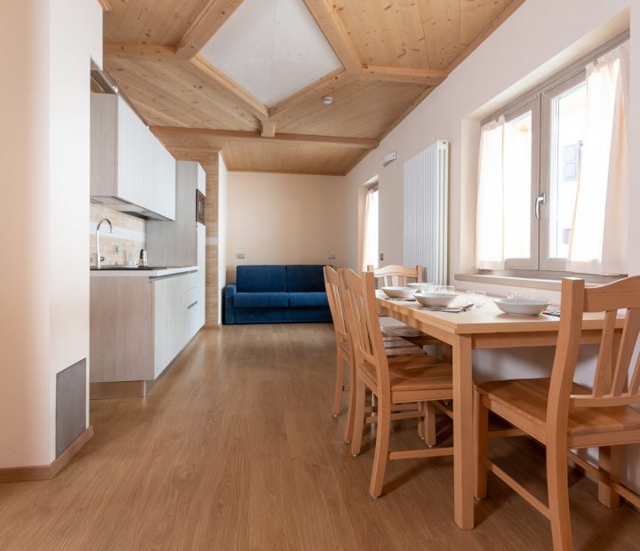 - 2x Trilo Superior (2-5 osôb, cca 65 m2, dvojpodlažný): na prvom podlaží obývacia izba s kuchynským kútom, jedálenským sedením, 1 samostatnou posteľou a izba s manželskou posteľou a kúpeľňou. Na vyššom podlaží je open space s rozkladacou pohovkou (spanie pre 2 osoby) a kúpeľňou. Balkón. TV, wifi. Ideál pre 4- alebo 5-člennú rodinu.
