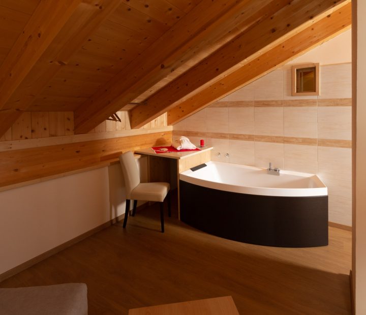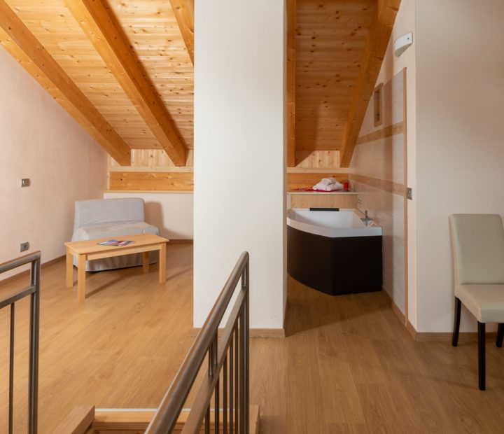 - 1x Trilo Deluxe (2-4 osoby, cca 65 m2, dvojpodlažný): na prvom podlaží obývacia izba s kuchynským kútom, jedálenským sedením a izba s manželskou posteľou a kúpeľňou. Na vyššom podlaží je open space s rozkladacou pohovkou (spanie pre 2 osoby) a kúpeľňou s jacuzzi (hydromasážnou vaňou). Balkón. TV, wifi. Ideál pre 4-člennú rodinu.
