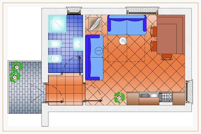 - Štúdio 3 obsadené 2 osobami (označenie partnera Mono): Štúdio pre max. 3 osoby. Má obývaciu izbu so spaním pre 2 osoby a 1 pohovkou pre 1 osobu (3 os.), vybavený kuchynský kút, kúpeľňa so sprchovacím kútom a sušičom vlasov. Bez balkónu.