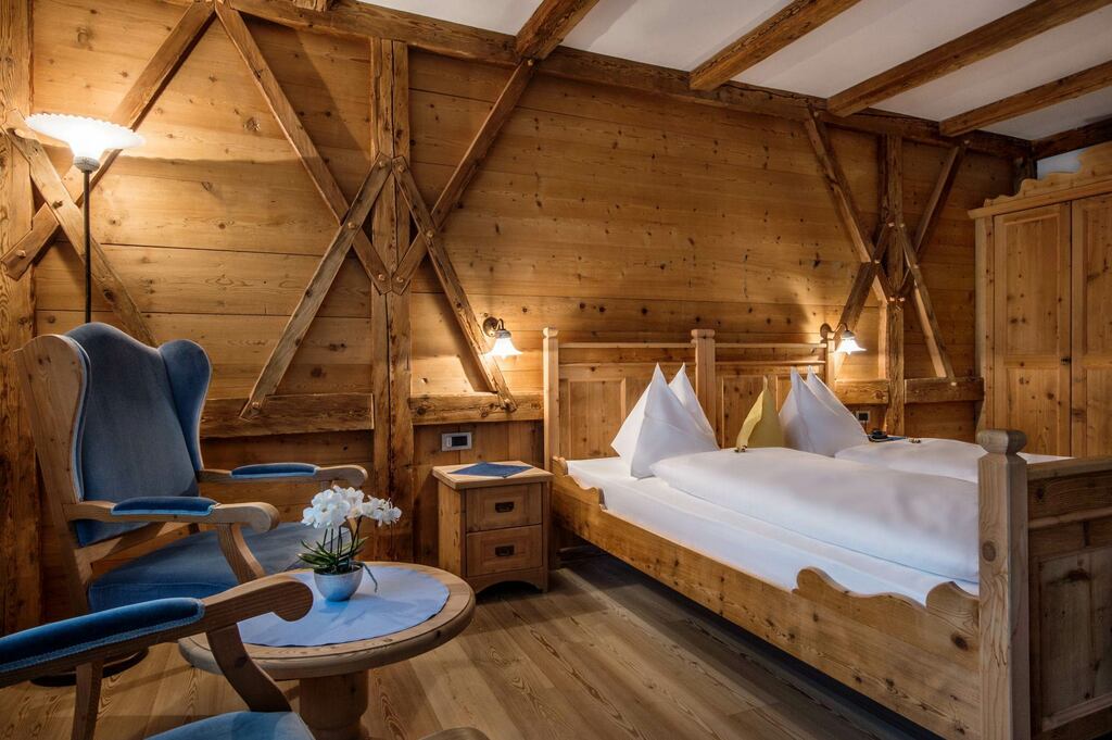 Nábytok je vyrobený z dreva a zahŕňa typické ladinské dekorácie, silne ovplyvnené habsburgskými cisárskymi vzormi, ktoré sú vo Viedni stále prítomné. Maľby na stenách izieb, chodieb a spoločných priestorov pripomínajú prírodu, ktorá údolie obklopuje.