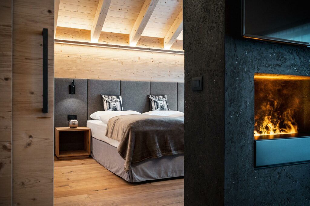 - Suita ROMANTIC LODGE: priestranný apartmán s rozlohou 56 m². "Mountain Chic" s typickým dreveným nábytkom a moderným štýlom; pozostáva z veľkého otvoreného priestoru so spálňou s manželskou posteľou a obývacou časťou s rozkladacou pohovkou a romantickým krbom; apartmán ponúka priestrannú terasu s úchvatným panoramatickým výhľadom. Príslušenstvo do sauny (uterák, župan, kúpacie topánky), SAT TV s plochou obrazovkou, rádio, telefón, káblové pripojenie INTERNET, trezor a minibar.
