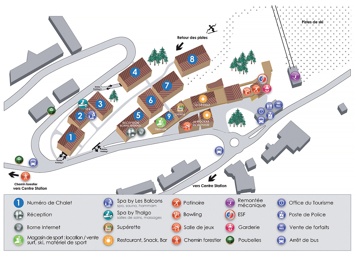 - Spa by Les Balcons: hammam, sauna, vírivka (povinná čiapka na kúpanie, zákaz šortiek, zákaz deťom do 16 rokov bez sprievodu, otvorené denne 10-12 hod. a 15-20 hod.) ... umiestnené v chalete 2
