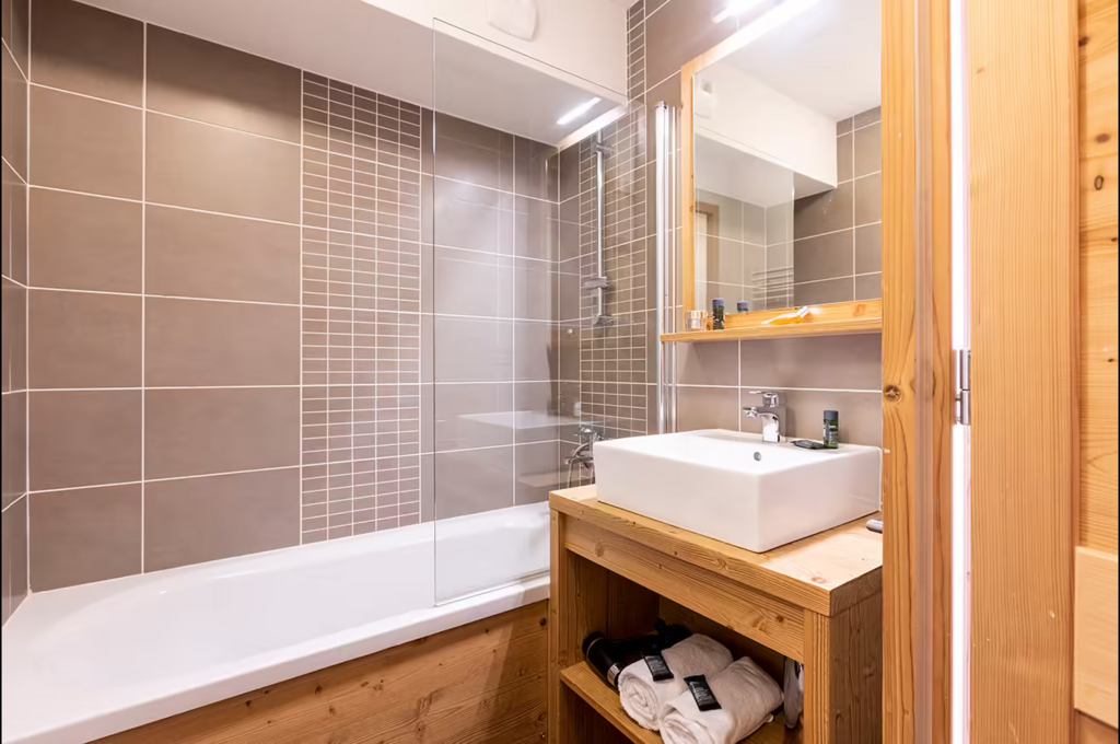 - Apartmán 3P6 Famille (cca 38-45 m2): obývacia spálňa s rozkladacou pohovkou na spanie (2 os.), TV, jedálenským a kuchynským kútom (chladnička, sklokeramické varné platničky, kombinovaná mikrovlnná rúra, umývačka riadu, kávovar s filtrom, varná kanvica), izba s 2 samostatnými posteľami (2 os.), izba s poschodovou posteľou (2 os.), 2 kúpeľne (fén, sušič uterákov), oddelené WC