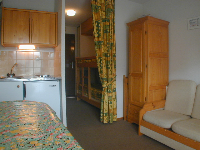 - ST4 (cca 25 m2): obývacia spálňa s kuchynským kútom (varné platňa, chladnička, rúra) a rozkladacím lôžkom (2 os.), poschodová posteľ alebo 2 samostatné postele (2 os.), kúpeľňa s WC